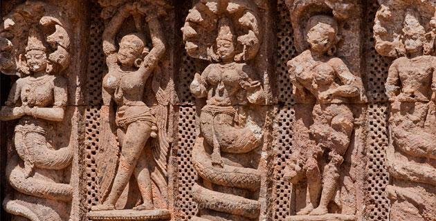 Dedicated to the Hindu ‘god Surya, what remains of the temple complex has the appearance of a 100-foot (30 m) high chariot with immense wheels and horses, all carved from stone. Once over 200 feet (61 m) high,much of the temple is now in ruins, in particular the large shikara tower over the sanctuary; at one time this rose much higher than the mandapa that remains. The structures and elements that have survived are famed for their intricate artwork, iconography, and themes, including erotic kama and mithuna scenes. Also called the Surya Devalaya, it is a classic illustration of the Odisha style of Architecture or Kalinga Architecture.