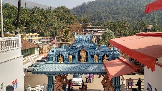 To visit the Horanadu Annapoorneshwari Temple, devotees have to climb a few steps to reach the main temple complex. The Gopuram of the Temple also has various sculptures of Gods and Goddesses. A mandapam is there on the left of the main entrance. A queue complex next to the Mandapam is also there for entry into the main hall where Annadanam takes place every day.