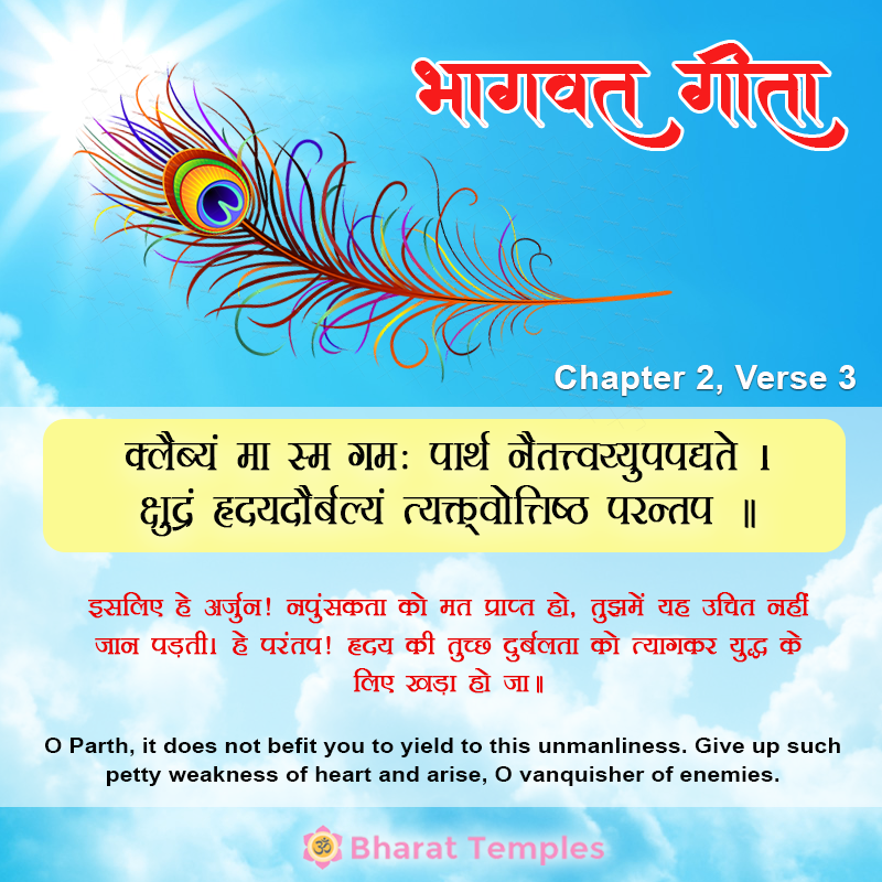- “Klaibyam mā sma gamaḥ” – “Do not give in to impotence or cowardice.”