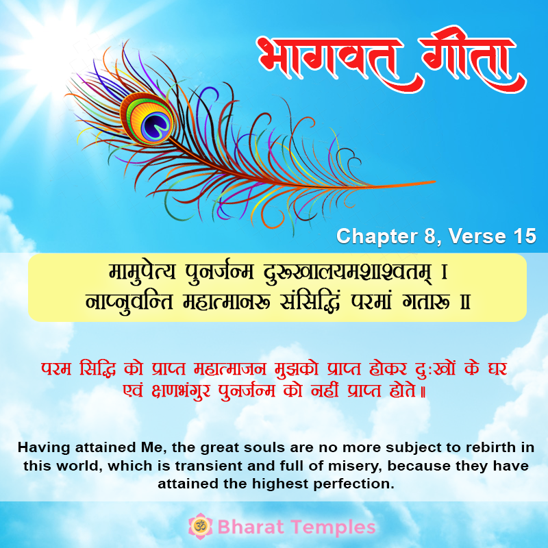 Having attained Me, the great souls are no more subject to rebirth in this world, which is transient and full of misery, because they have attained the highest perfection.