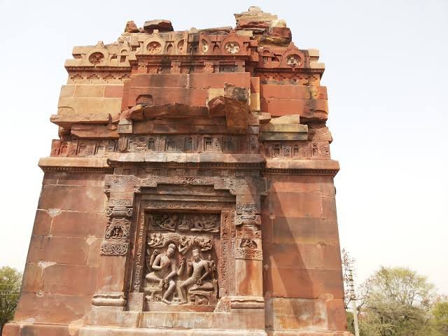 This Gupta period Vishnu temple is the earliest known Panchayatan temple of north India. The terraced basement above the high temple plinth is adorned with a continuous row of sculptured panels. A highly carved doorway with Ganga_Yamuna figures lead to sanctum sanctorum or the garbhagriha. Three big Rathika Panels – Gajendra Moksha, Nara-Narayan tapasya and the Anantshai Vishnu – set in the side walls depict Vaishnava mythological scenes carved in high relief. The temple is noted for being the first north Indian temple with a spire or shikhara. Erotic panels are an added attraction.