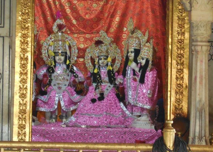 The temple is built in the middle of a sacred lake, which measures 160 metres (520 ft) x 130 metres (430 ft). Its dome and canopiesare similar to that of the Golden temple of Sikh religion, also located in Amritsar. A bridge provides the approach to the temple.The dome of the temple is gilded. Marble is used extensively in the temple’s features.The dome is illuminated with colourful lights. The temple is sometimes called Silver temple because of its large exquisitely designed silver doors.It has a rich collection of Hindu scriptures.The temple complex also has some historic subsidiary temples such as Sita Mata and Bara Hanuman.