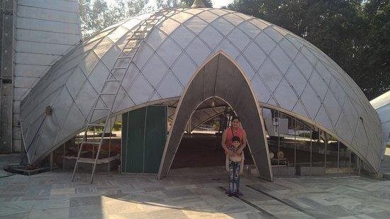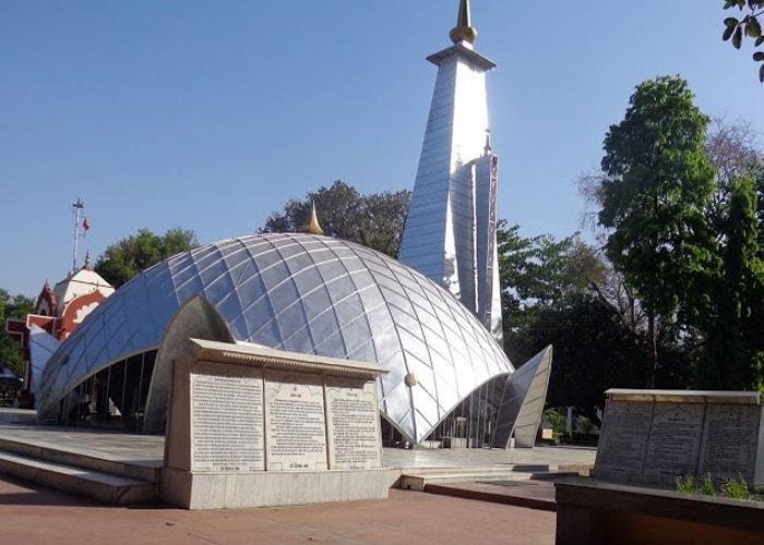 The EME Temple or “Dakshinamurty Temple” is a Shiva Temple run by Indian Army Authorities in the city of Vadodara in the state of Gujarat, western India. It is a unique in concept & design, geodesic structure covered with aluminium sheets. It was built by the Electrical and Mechanical Engineering (EME) corps of the Indian Army. This temple is a major attraction for both tourist and devotees. It is one of its kind in the world. EME Temple, often referred as the Dakshinamurti Temple, was built by the Electrical and Mechanical Engineering (EME) Corps. Featuring an unusually modern geodesic architecture, this temple is dedicated to Dakshinamurti, a form of Shiva as supreme teacher. It is run by Indian Army Authorities, and incorporates holy symbols of all religions in one place as they do not have separate places of worship for different faiths.Depicting army architecture, the aluminium building of this temple is ringed by a garden featuring a rich collection of 106 ancient statues from the 6th to the 16th centuries.
