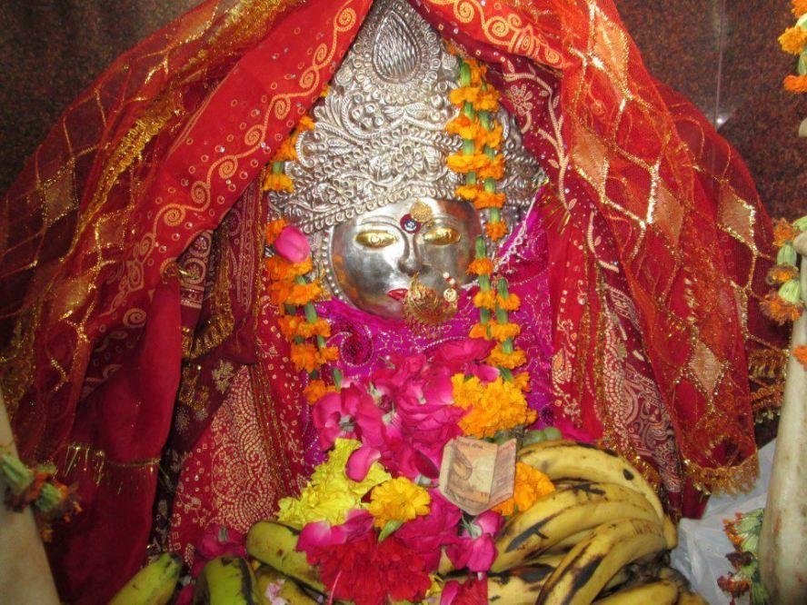 Near the entrance of the temple, on the right hand side, there is a Shiva temple. There is a Peepal (Bo or Sacred Ficus) tree and devotees tie threads to that. The thread is known as moli. There is a belief that deity fulfills all the wishes of devotees. Inside temple there is idol of Mata. There is a priest who takes care of temple. Devotees usually bring offerings for the Devi. The offerings includes sweets (Suji halwa, laddu, barfi), kheel (sugar-coated puffed rice), narial (coconut) and flowers. In navarats and saavan days, the temple gets decorated with lights etc.