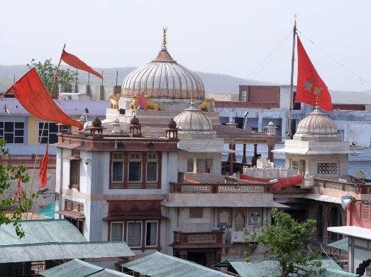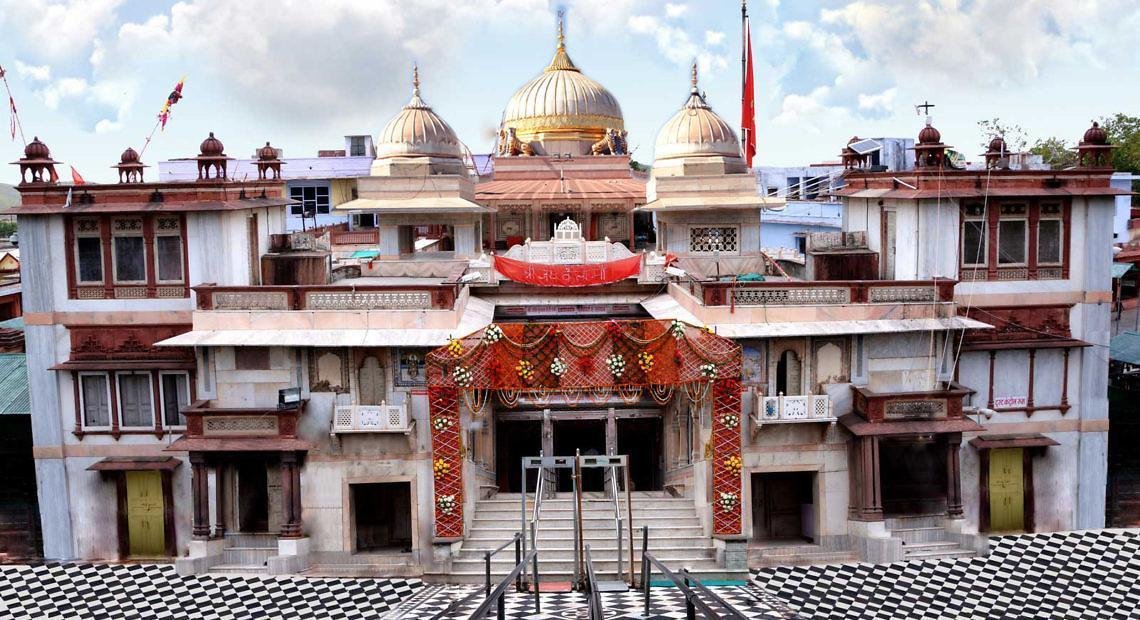 The temple is dedicated to the tutelary deity, Goddess Kaila Devi, of the erstwhile princely Yaduvanshi rulers of the Karauli state. It is a marble structure with a large courtyard of a checkered floor. In one place are a number of red flags planted by devotees.