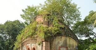 The temple is a large, beautiful, terracotta ornamented, dilapidated temple of Radha & Madangopal-jiu and was built in 1651 AD by a wrestler, Mukundaprasad Roychoudhury, who was a family member of the Roy Zamindars, who then ruled the village of Samta. It was earlier situated on the banks of the Rupnarayan River but now the river has changed its course. This is one of the largest atchala (roof with 8 slopes) temples in Bengal. Presently, the condition of the temple is derelict; however, the reconstruction has been started at present.