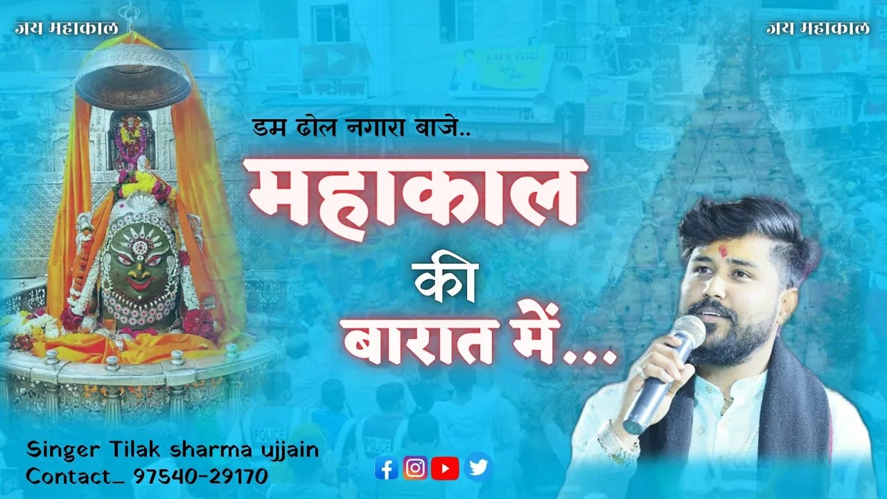 उजले होकर सज गए भोले, मोहक रुप बनाए, ब्रम्हा जी मृदंग बजाते, विष्णु मंगल गाए, श्रृंगी भृंगी भी नाचे, देव और दानव भी नाचे, गौरव तिलक भी नाचे, महाकाल की बारात में, डम डम डम डमरु बाजे, महाकाल की बारात मे।।