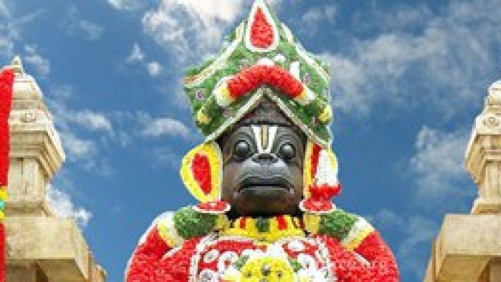 Namakkal Anjaneyar temple is located in Namakkal, a town in Namakkal district. It is dedicated to the Hindu god Hanuman. It is constructed in the Dravidian style of architecture. The legend of the temple is associated with Narasimha, an avatar of Hindu god Vishnu appearing for Hanuman and Lakshmi. The image of Anjaneyar is 18 ft (5.5 m) tall, making it one of the tallest images of Hanuman in India. The Agamam is followed by “Sri Vaikhanasam”.