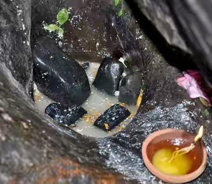 The Shivalingas are said to have been enshrined by Sita, the wife of Lord Rama during their exile. Another story holds that King Banasuraworshiped the Swayambhu Lingas at this place given its beauty. A perennial stream, which is the main attraction of the area, regularly washes the Shivalingas as it flows over them. To reach to the temple one has to lie flat on the rock parallel to the stream to touch and worship the lingas inside the water stream.