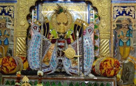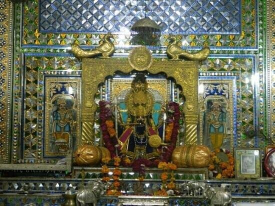 The Sanwaliaji temple of the Dark Krishna is situated on the Chittorgarh – Udaipur Highway, at the town of bhadsora, about 40 kilometers from Chittorgarh. The deity also known as Shri Sanwaria Seth.The legends has it that in the year 1840, a milkman named Bholaram Gurjar dreamt of three divine statues buried under the ground in the Chapar village of Bhadsora-Bagund. When the villagers started digging the place, they found the three statues, exactly as Bholaram saw in his dream. They were the statues of LORD KRISHNA-all of them beautiful and mesmerizing. One of the statues was taken to Mandaphiya, one to Bhadsoda and the third remain at the very place where it was found. All three locations became temples. When it was brought to Mandaphiya, at that time shri Rodulalji jain(Village head of Mandaphiya) with the help of villagers built a small temple consisting of four walls and shade and placed the statue by performing all the necessary rituals.Later on, the three temples of Sanwaliya Ji became renowned and devotees visit them in large numbers every day. Located just 40 from Chittorgarh – the historic city of valor and devotion – Mandaphiya is now known as Shri Sanwaliya Dham (The residence of Lord Krishna) and is second to Shri Nathadwara to the followers of the Vaishnav Sect. People believe that all their desires are fulfilled when they visit Shri Sanwaliya Seth’s Darbar (Court of Shri Sanwaliya Ji).