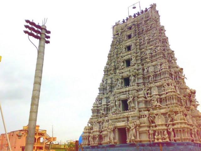 At the front of the temple is a lotus covered pond called Chandrakundam, and there is a large Gopuram at the temple entrance. In the left side of temple there is a big hall in which temples of Lord Srirama and Hanuma are present.