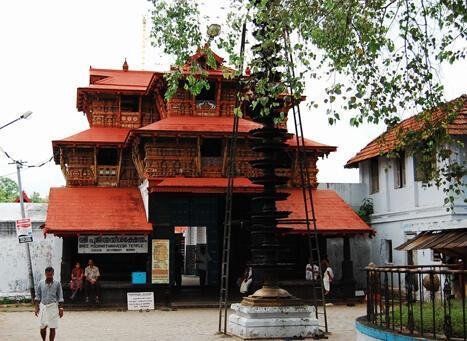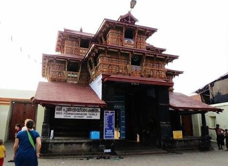 Traditions say that Lord Vishnu offered the idol of Sree Poornathrayeesa to Arjuna (the third of the five Pandava brothers), when he sought the help of the Lord to give rebirth to the ten children of a Brahmin. The ten children and the sacred idol were taken by Arjuna in his chariot and he handed over the children to the Brahmin. In memory of this event, a temple was built with a sanctum-sanctorum in the form of a chariot. Lord Ganesh was sent by Arjuna to search a holy place for the installation of Lord Vishnu. Earlier, the idol was kept in a palace which is situated at the west of the main temple and now it is known as Poonithura Kottaram.