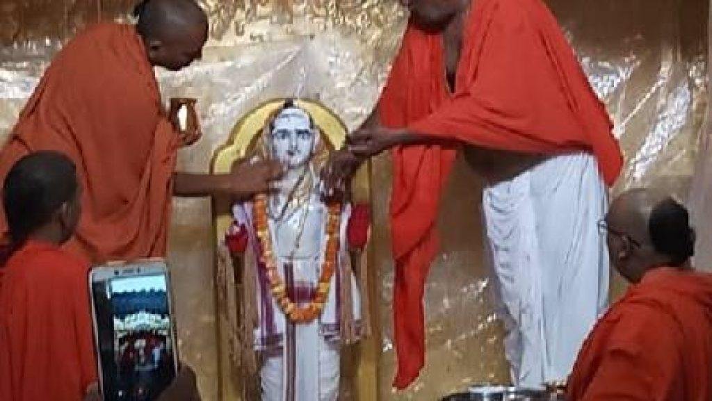 Swaminarayan was born Ghanshyam Pande in Chapaiya, Uttar Pradesh, India in 1781. In 1792, he began a seven-year pilgrimage across India at the age of 11 years, adopting the name Nilkanth Varni. During this journey, he did welfare activities and after 9 years and 11 months of this journey, he settled in the state of Gujarat around 1799. In 1800, he was initiated into the Uddhav sampradaya by his guru, Swami Ramanand, and was given the name Sahajanand Swami. In 1802, his guru handed over the leadership of the Uddhav Sampraday to him before his death. Sahajanand Swami held a gathering and taught the Swaminarayan Mantra. From this point onwards, he was known as Swaminarayan. The Uddhav Sampraday became known as the Swaminarayan Sampraday.